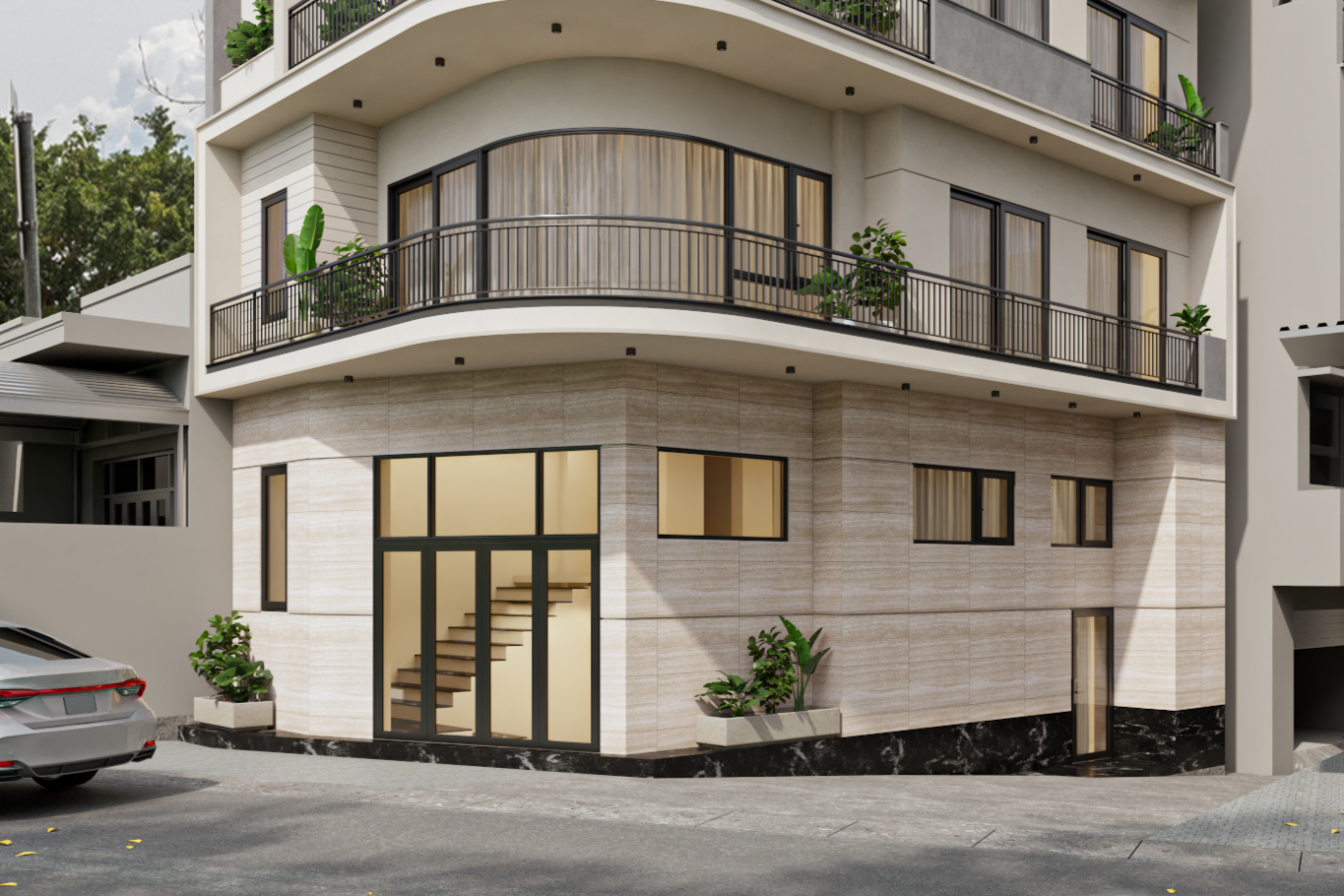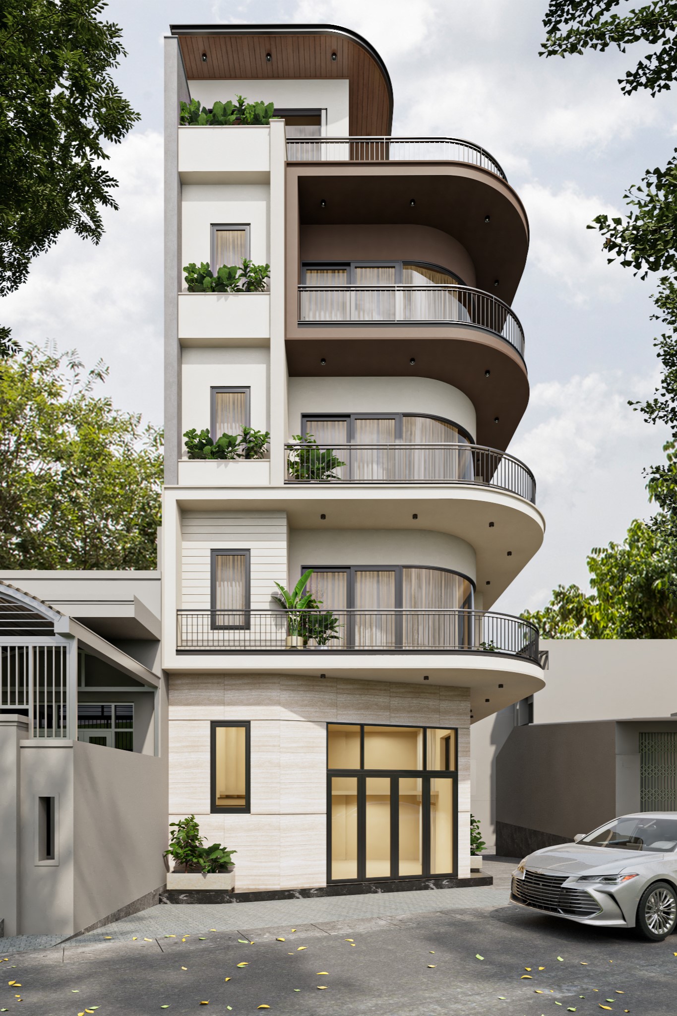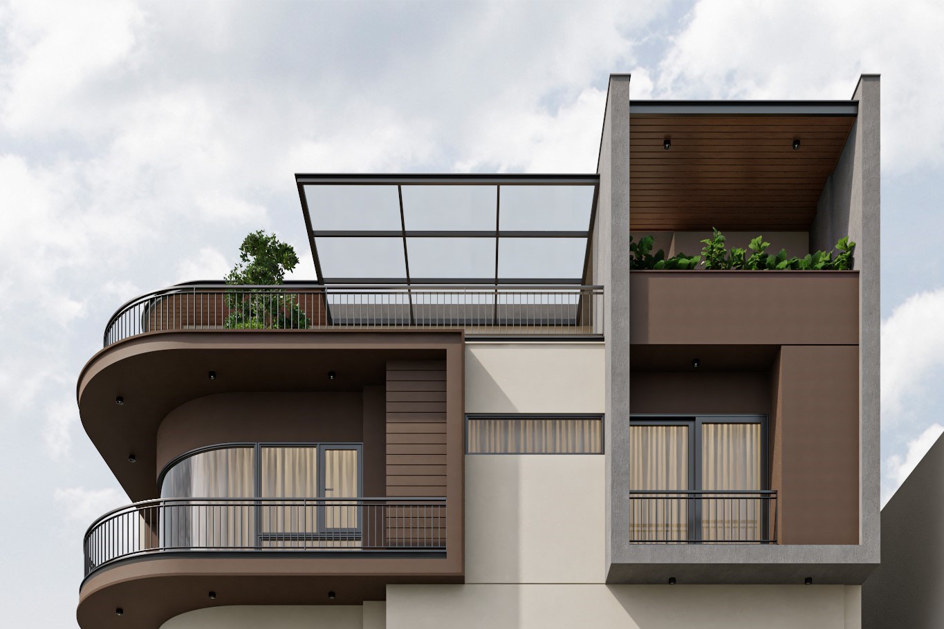 Tại Modul 5 Architects, mỗi công trình không chỉ là một không gian sống, mà còn là sự kết tinh giữa thẩm mỹ kiến trúc, công năng và trải nghiệm sống của gia chủ. Dự án nhà ở này được thiết kế với ngôn ngữ kiến trúc hiện đại, nổi bật bởi những đường cong mềm mại của hệ ban công và các mảng khối đan xen tinh tế.